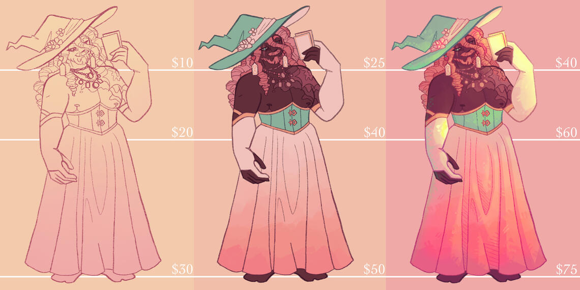 | Half Body | $20 | $40 | $60 | +$15 | +$40 |